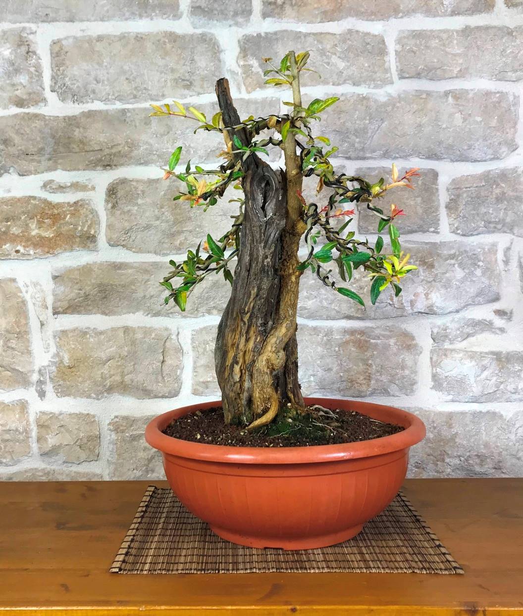 It comes in a glazed bonsai container.